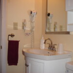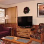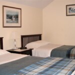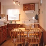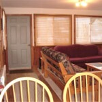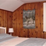 Largest cottage with 2 bedrooms – one with king bed (can be separated into twins), the other with twin beds (can be set up as king bed). Sofa bed in living room. Bathroom has tub/shower.